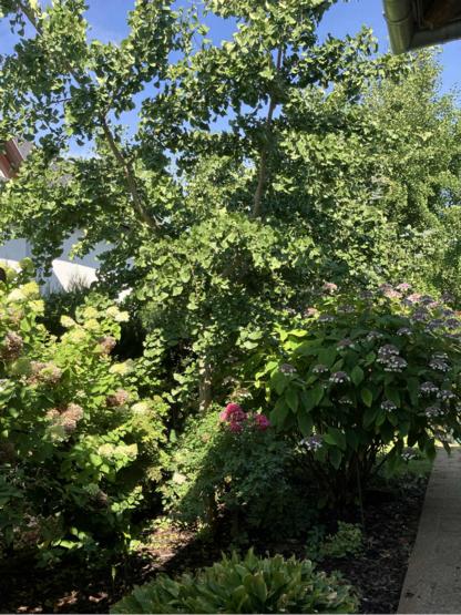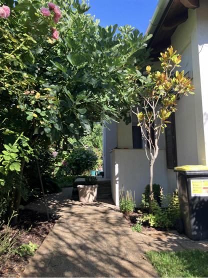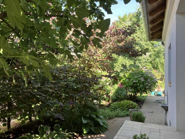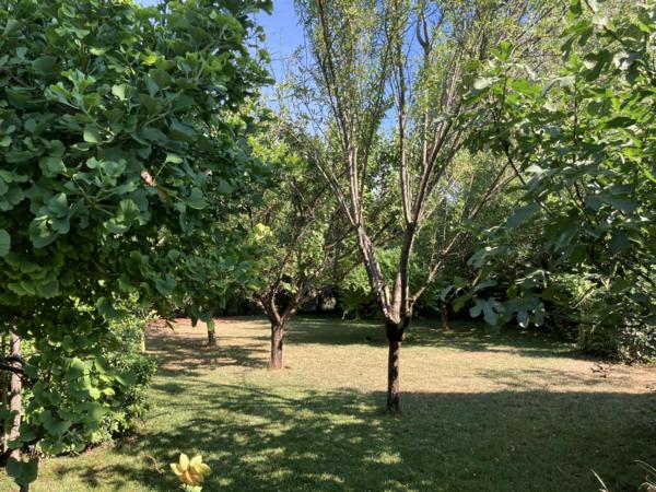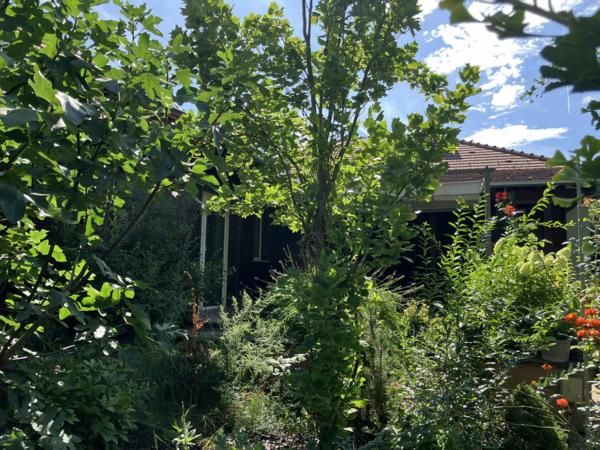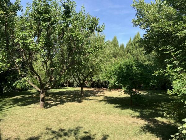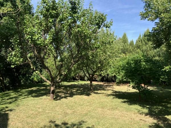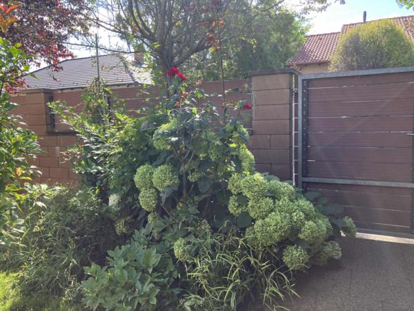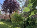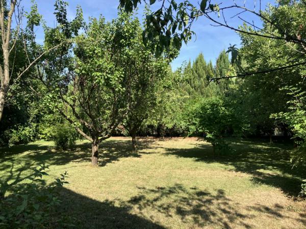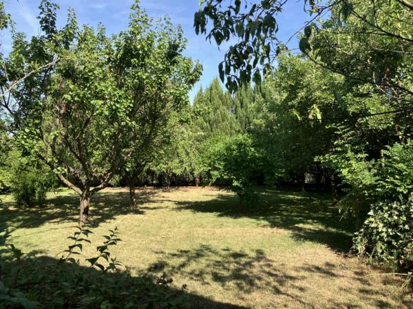 A 1040 m2-es, szabályos alakú telek parkosított, gondozott, közvetlen kertkapcsolattal a teraszhoz tökéletes a nyári pihenéshez vagy családi összejövetelekhez.