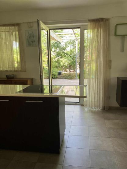 Konyha + étkező, amelyek közvetlen kapcsolatban vannak a terasszal és a kerttel
