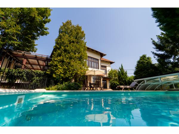 Szentendre egyik kedvelt, zöldövezeti részén, a Pismány-hegy alsó részén kínálunk megvételre egy kivételes adottságú, 1103 m2-es saroktelken álló villaépületet, mindössze 15 perc sétára a belvárostól.