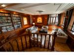 tölgyfa burkolatú könyvtár kandallóval